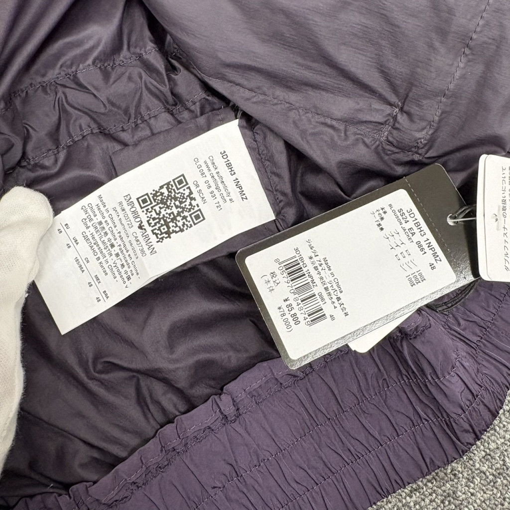 今回買取したEMPORIO ARMANIのナイロンジャケットは、その独特のパープルカラーが目を引く逸品です。カジュアルな中にも高級感が漂うこのジャケットは、軽量でありながらも保温性が高く、季節の変わり目にぴったりのアイテムです。また、48サイズというややゆったりとしたシルエットは、多様なスタイルに合わせやすく、普段のコーディネートに加えることで、洗練された大人の雰囲気を演出します。