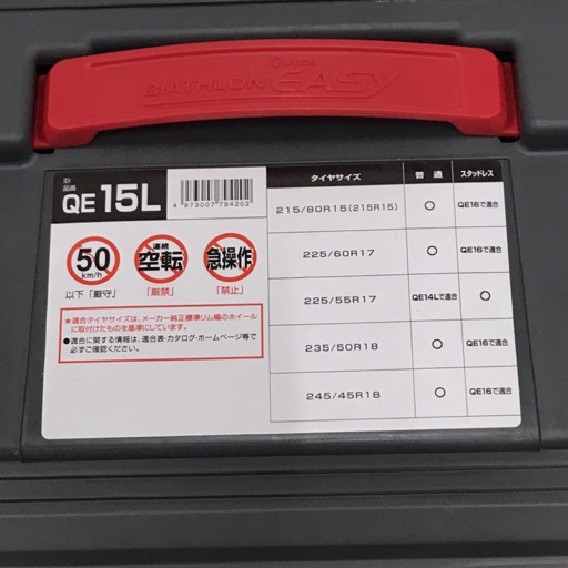 カーメイトのタイヤチェーンシリーズ「バイアスロン クイックイージー」は、その名の通り、簡単かつ迅速に装着できることが最大の魅力です。これまでにも数多くのモデルが展開されてきましたが、中でもQE15Lは、一般的なサイズのタイヤを装着している乗用車に適しています。特に、雪の降り始めや積雪量が多い地域で、素早く対応したいドライバーにとって強い味方となるアイテムです。
