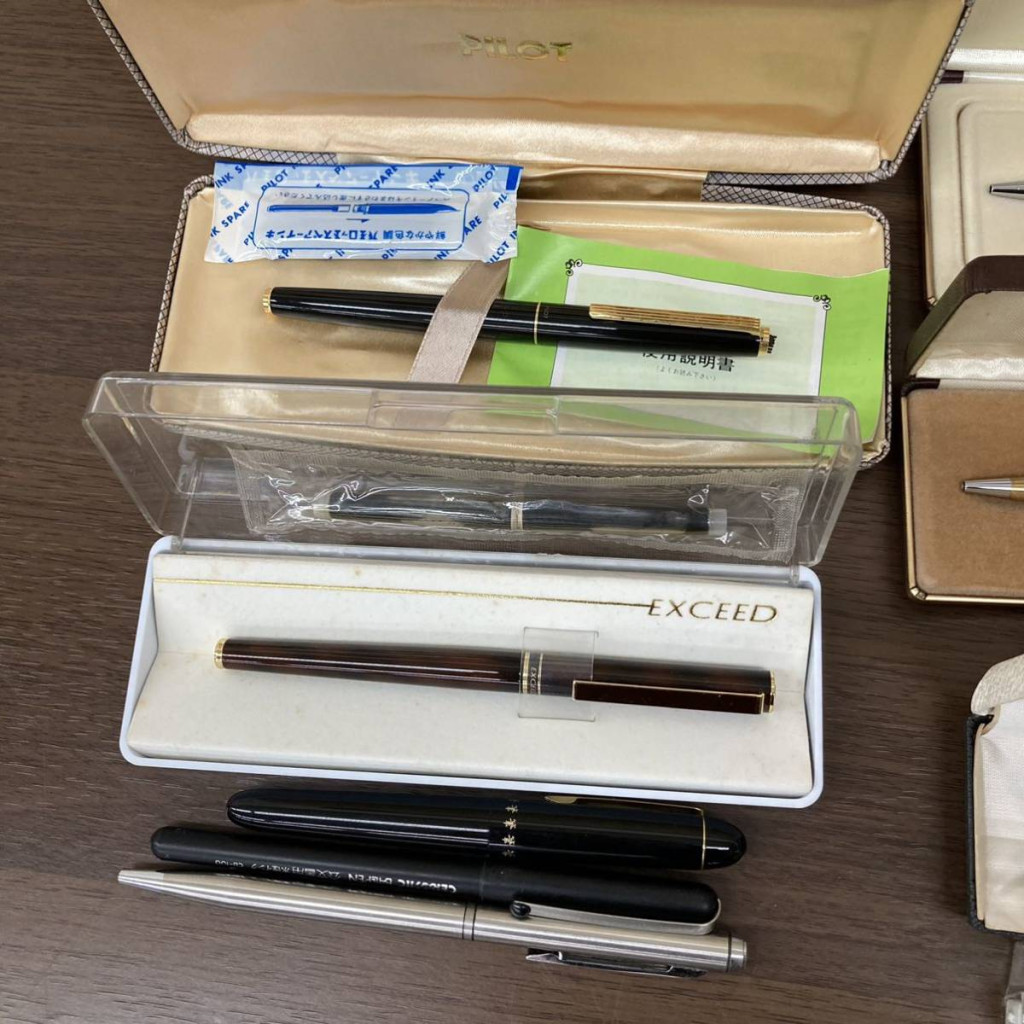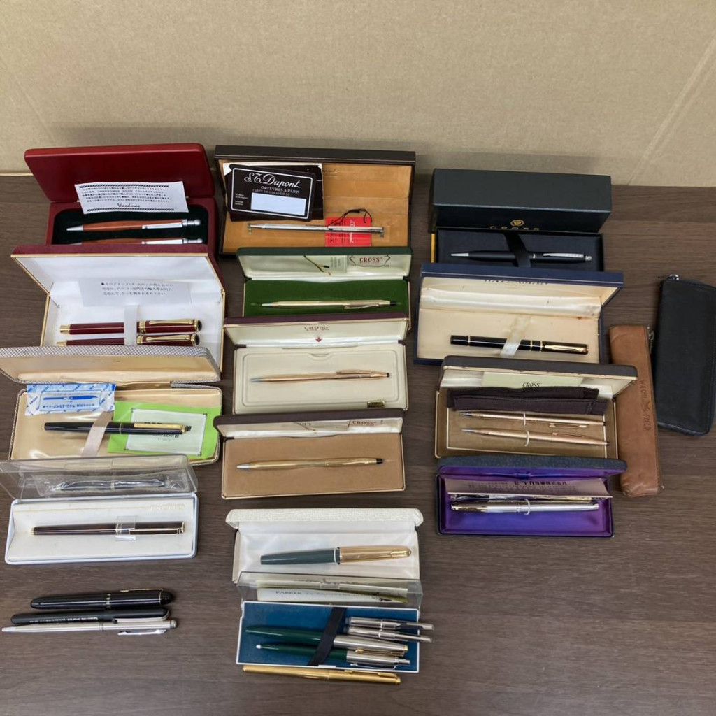 パーカーやクロス、デュポンやウォーターマン、パイロットなどをまとめて査定させていただき、当社としましても貴重な体験となりました。ただ、全体的に傷や凹みなどの使用感が強かったこともあり、査定金額はやや控えめとなっております。