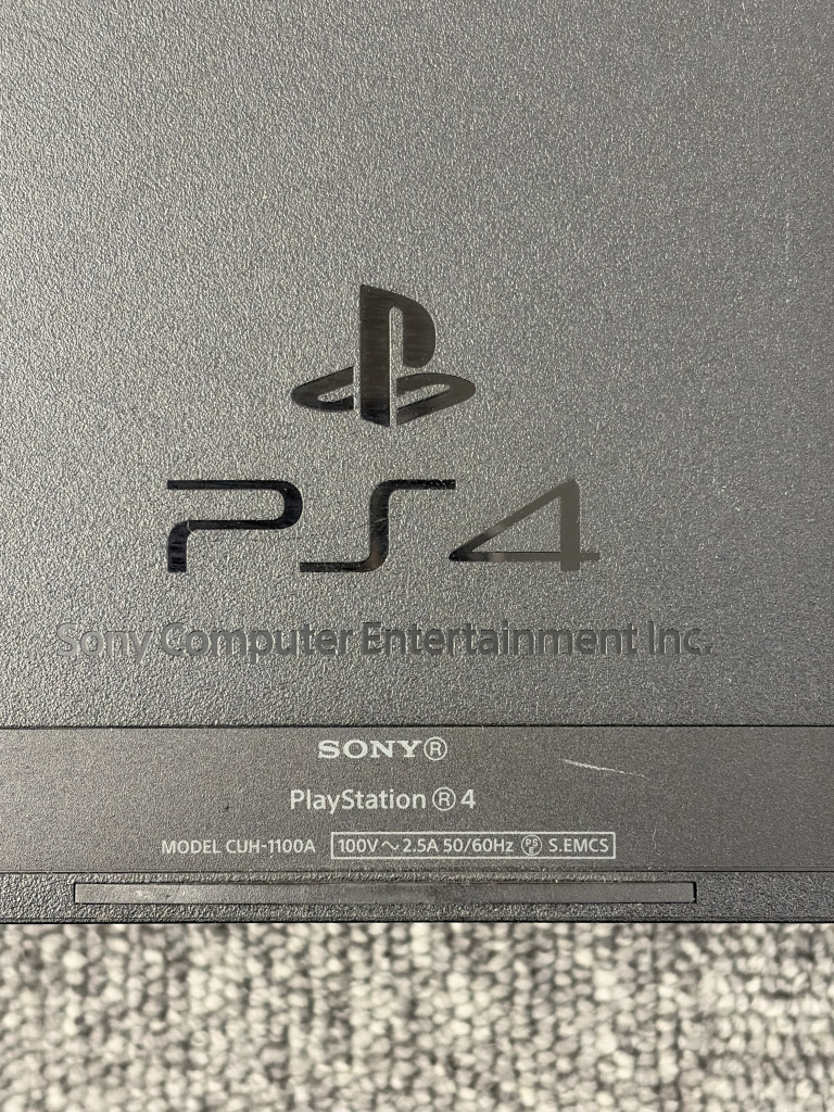 今回買取いたしましたのはPS4のCUH-1100A型番です。CUH-1100Aは、PS4の初期モデルであるCUH-1000シリーズのマイナーチェンジ版として2014年にリリースされました。このモデルは、主に内部設計の見直しが行われ、消費電力の最適化と共に、より静音性を意識した設計が施されています。性能自体はCUH-1000と大きな違いはありませんが、その音の静かさと省エネ設計はユーザーから高く評価されています。