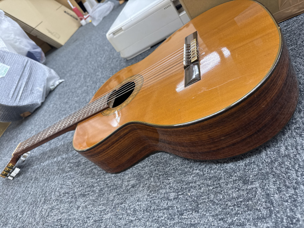Terada Guitarは、日本を代表する楽器メーカーの一つで、1950年代から高い品質のギターを製作しています。特に1970年代には、その質の高さから海外のブランドとも提携しています。Teradaの楽器作りには、職人技が宿っており、鮮やかな音色と優れた耐久性から、多くのミュージシャンに信頼されています。アコースティックギターにおいては、その音の深さと温かみが特に評価されています。