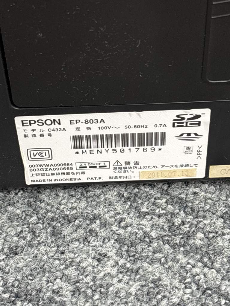 「EPSON EP-803A 複合機 インクジェットプリンター(2011年製)買取実績 - 2500円」