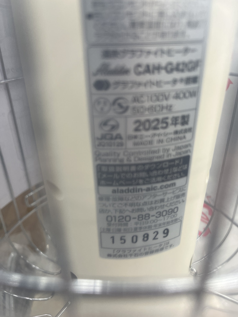 今回買取したアラジンの遠赤グラファイトヒーター CAH-G42GFは、現在の寒冷な季節にぴったりな製品です。このヒーターは遠赤外線により効率的な温熱効果を発揮することで知られています。グラファイトヒーターは、従来のヒーターに比べて瞬時に暖かくなる早さが特徴です。さらに、心地よい温かさを長時間維持するため、省エネ性能も優れています。