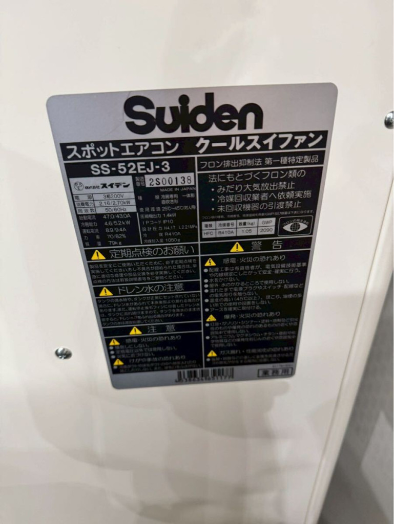 スイデンのスポットクーラーを買取いたします