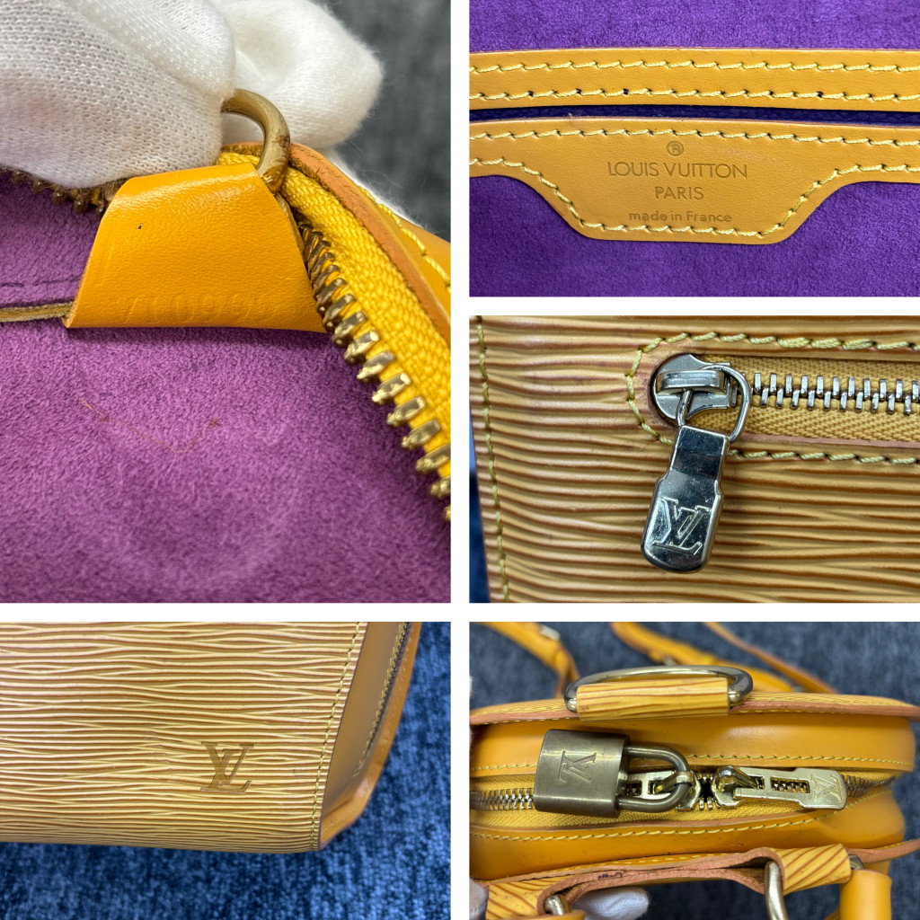 エピラインは、耐久性と機能性を重視した設計でありながら、見た目の美しさも兼ね備えています。革に施されたエンボス加工により、独特の線模様が生まれ、そのテクスチャーは他に類を見ません。使用される革は、しっかりとした硬さと耐久性を持ちながらも、驚くべき柔軟性で日常使いにも適しています。また、このラインでは様々なカラーが展開されており、今回買取に出された「イエロー系」もその中の代表的な色の一つです。イエローのエピは明るい印象を与え、持つ人のファッションに鮮やかさをプラスします。