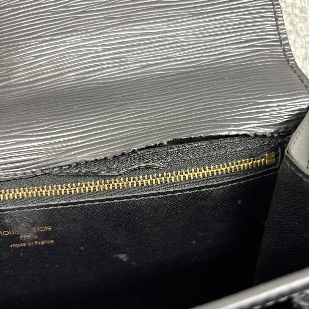 今回買取を行った商品は、ルイヴィトン エピ ポシェットセリエドラゴンヌ M52612 ノワールの訳あり品でした。『訳あり』とは、何らかの理由で新品の状態で売り出すことができない商品を指します。例えば、目立つ傷や使用感がある場合や、その他の瑕疵が認められるケースです。しかし、ノワール、すなわちブラックカラーはどんなシーンにも合わせやすい点が魅力で、多くのファッション愛好家にとって未だに人気が高いアイテムです。